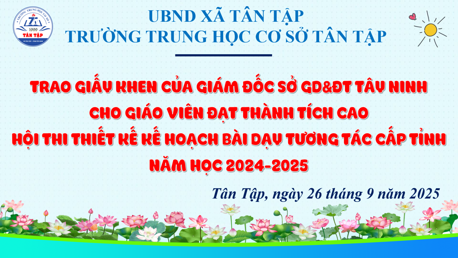 Lễ trao giấy khen của Giám đốc Sở Giáo dục và Đào tạo Tây Ninh (Long An cũ) cho giáo viên đạt thành tích cao trong hội thi thiết kế kế hoạch bài dạy tương tác cấp tỉnh năm học 2024-2025